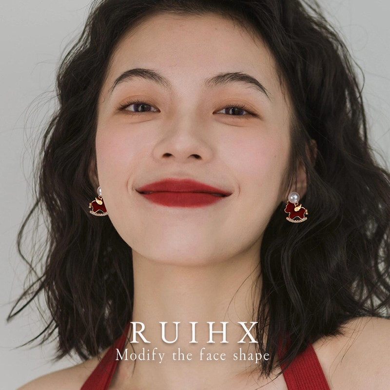 马年本命年红色植绒小马耳钉女999纯银针高级感耳环喜庆过年耳饰