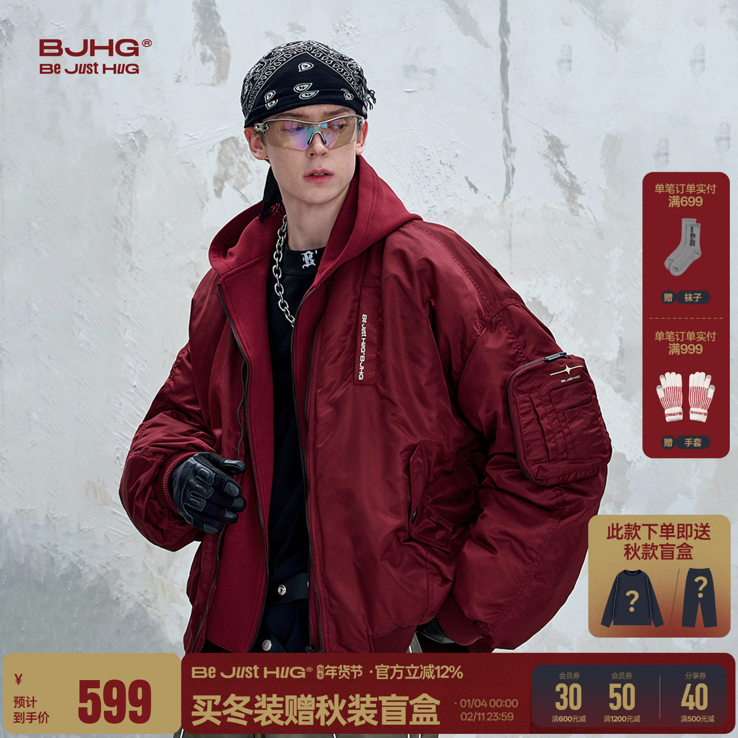 BJHG不计后果90白鸭绒羽绒服男款冬季外套美式新年红面包羽绒服女