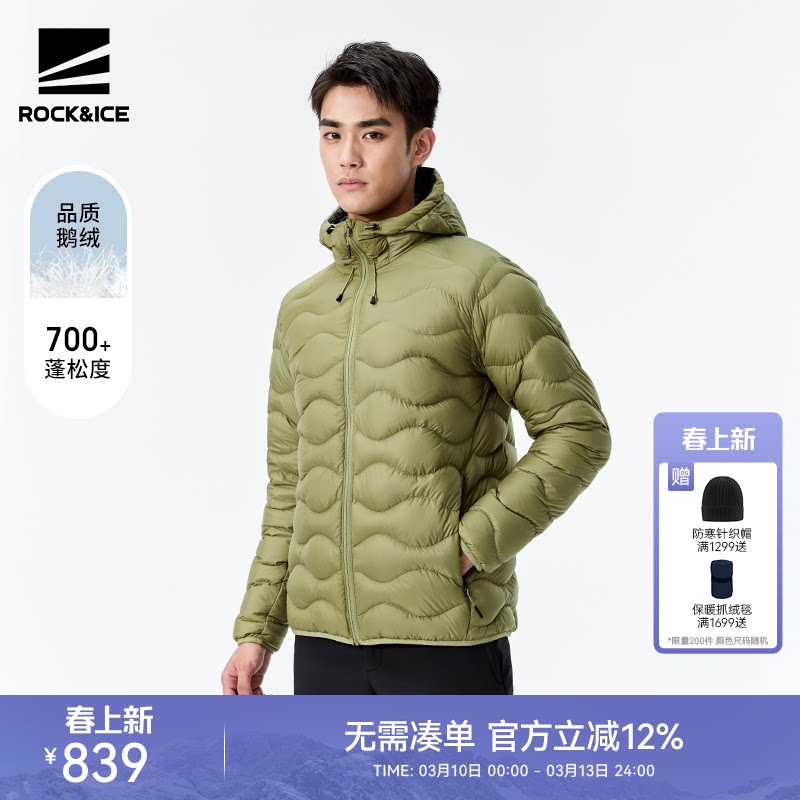 ROCKICE超轻鹅绒羽绒服男款户外防风保暖外套秋冬休闲时尚羽绒衣