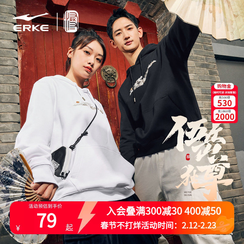 鸿星尔克卫衣男春秋男士运动休闲宽松套头连帽卫衣男款上衣帽衫男