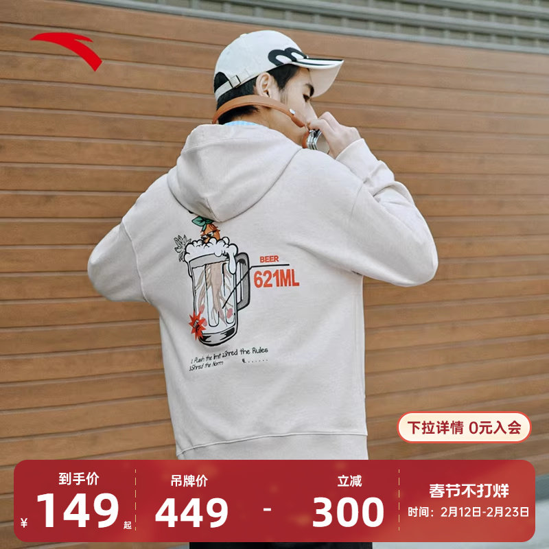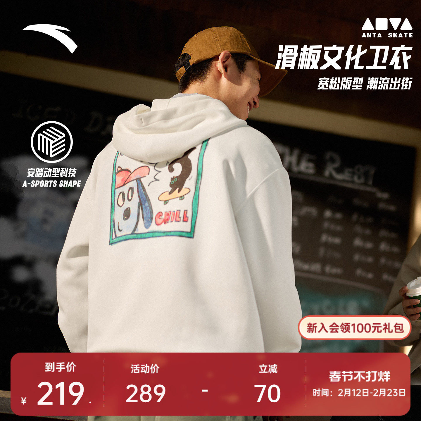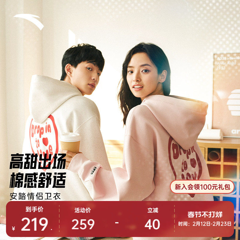 安踏情侣连帽卫衣男女同款春季潮流印花松弛感宽松上衣172538702