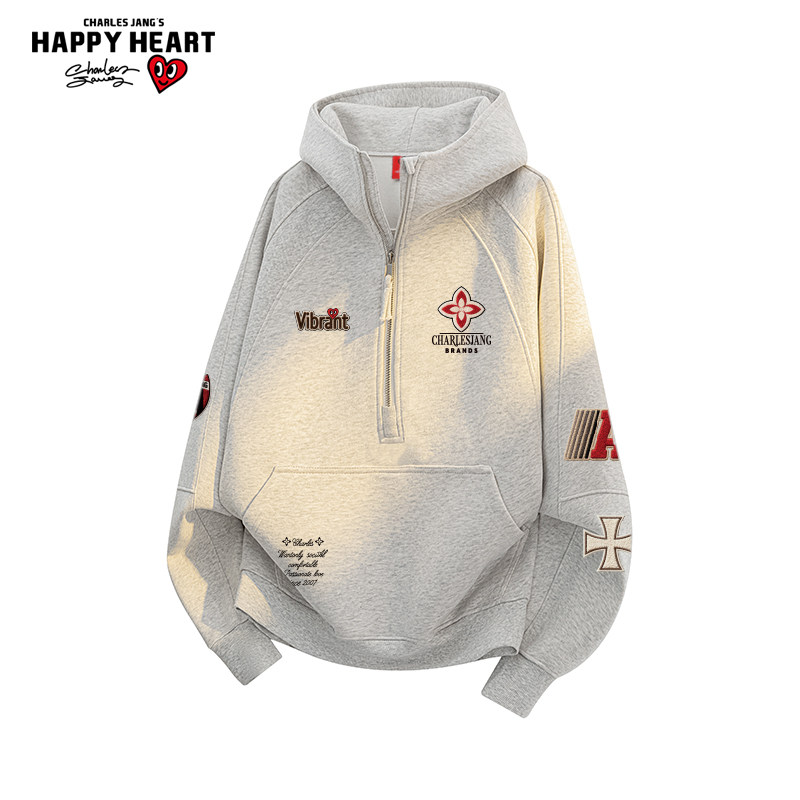 查尔斯桃心美式半拉链连帽卫衣男女新款春秋季运动休闲情侣外套潮
