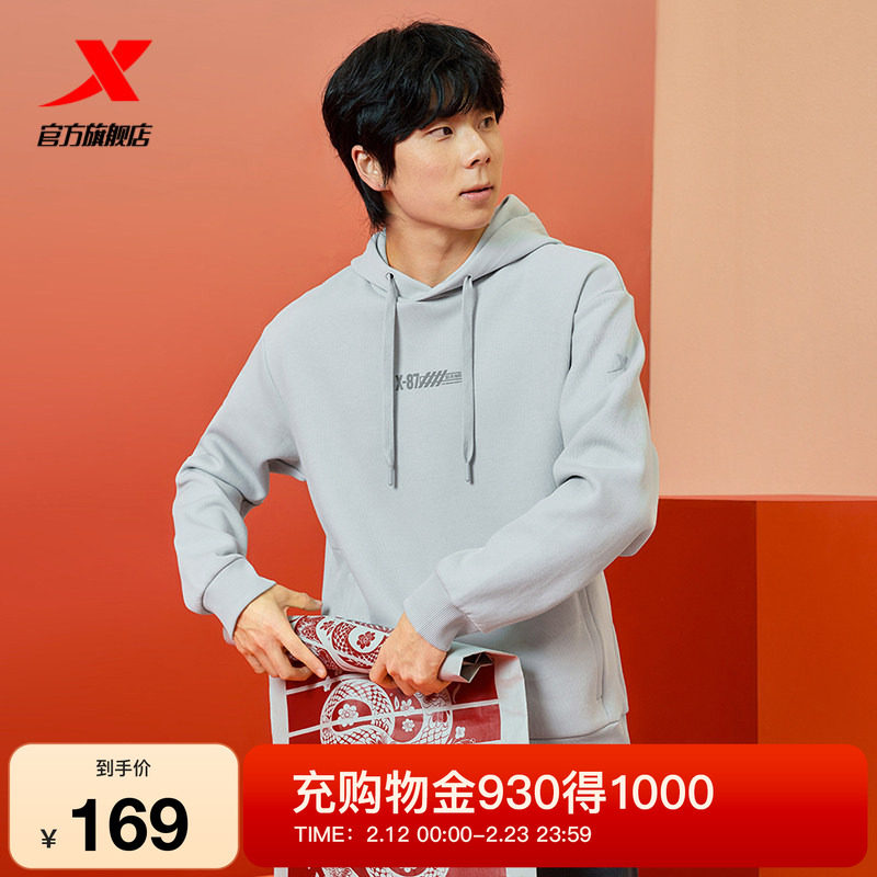 特步连帽卫衣男2025秋季新款针织上衣休闲宽松套头衫976329930029