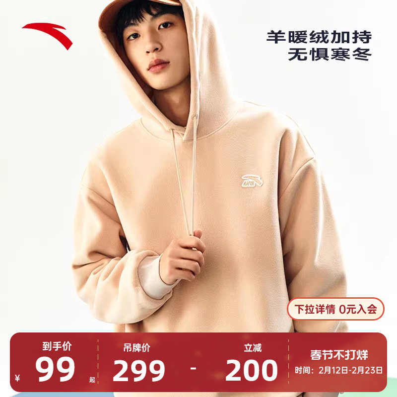 安踏好事发生丨新年款红色连帽卫衣男宽松保暖长袖上衣152518702