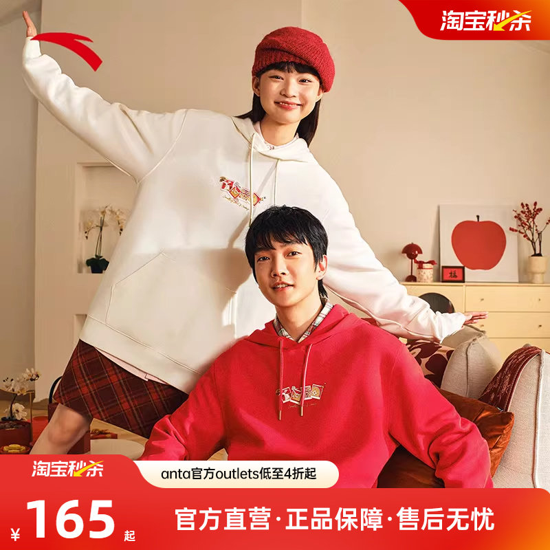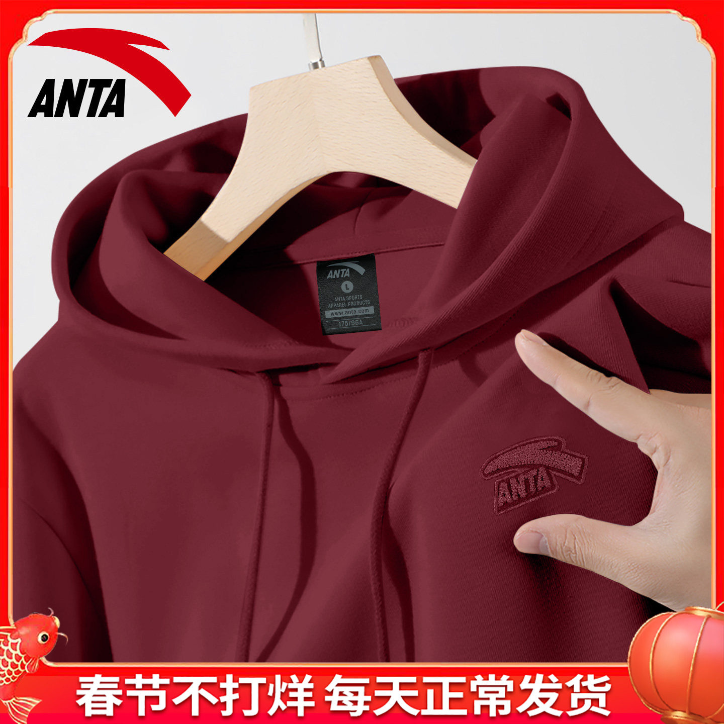 安踏好事发生丨新年款红色连帽卫衣男女休闲套头衫上衣152518725S