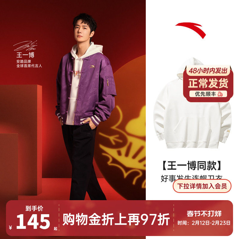 安踏好事发生丨新年款红色连帽卫衣男女休闲套头衫上衣马年本命年