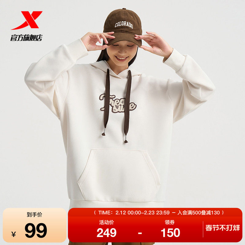 特步连帽卫衣男女2025春秋情侣套头宽松长袖休闲百搭运动上衣