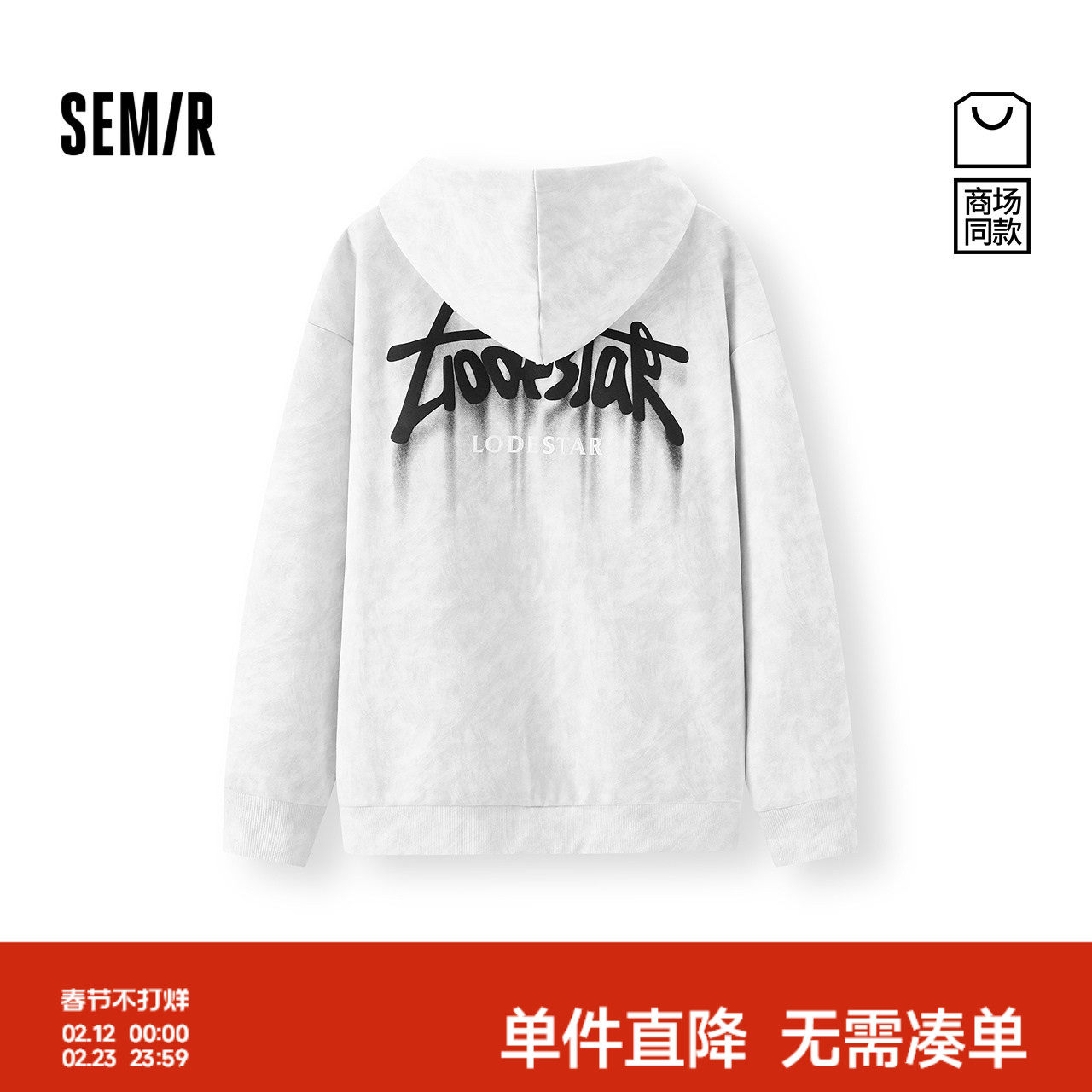 商场同款|森马连帽卫衣男秋装宽松2025新款复古蜡染字母印花上衣