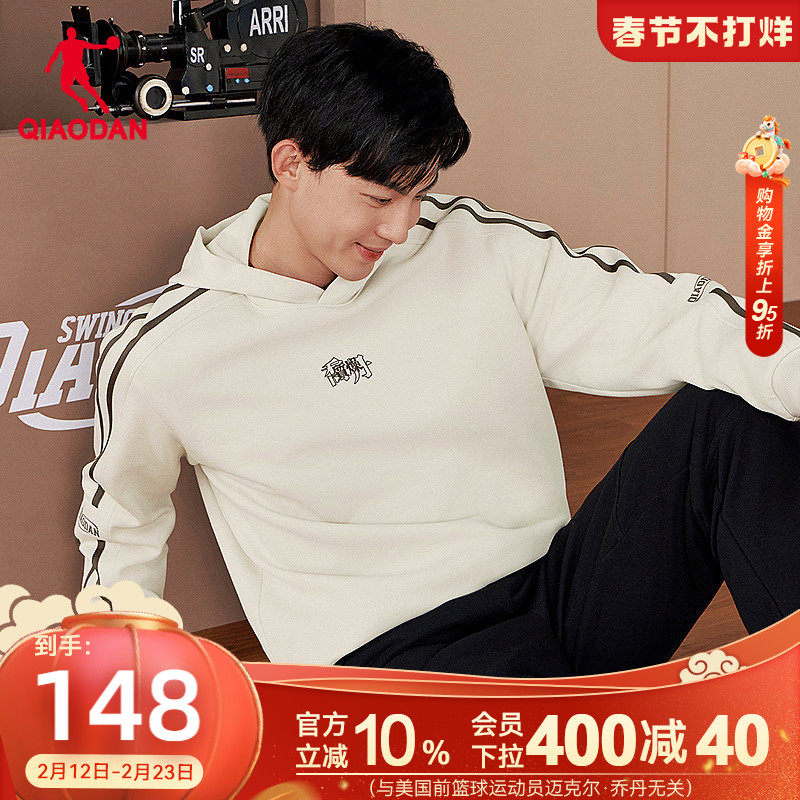 中国乔丹连帽卫衣男2026新款男生套头运动休闲潮流长袖上衣男