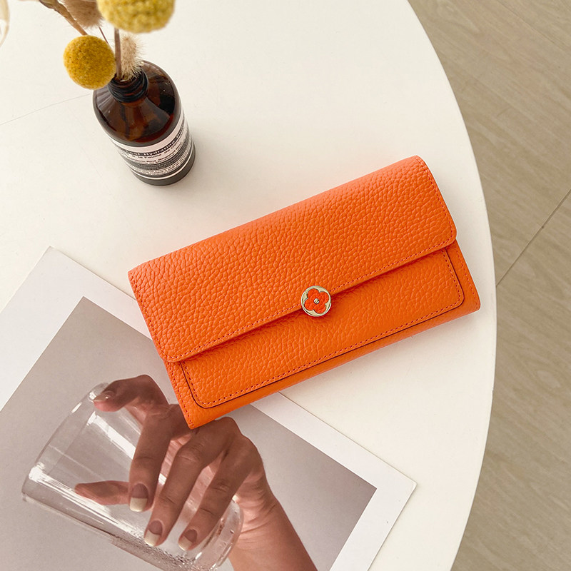 纯牛皮高档手拿钱包女士休闲真皮长款钱夹山茶花软牛皮手包放手机