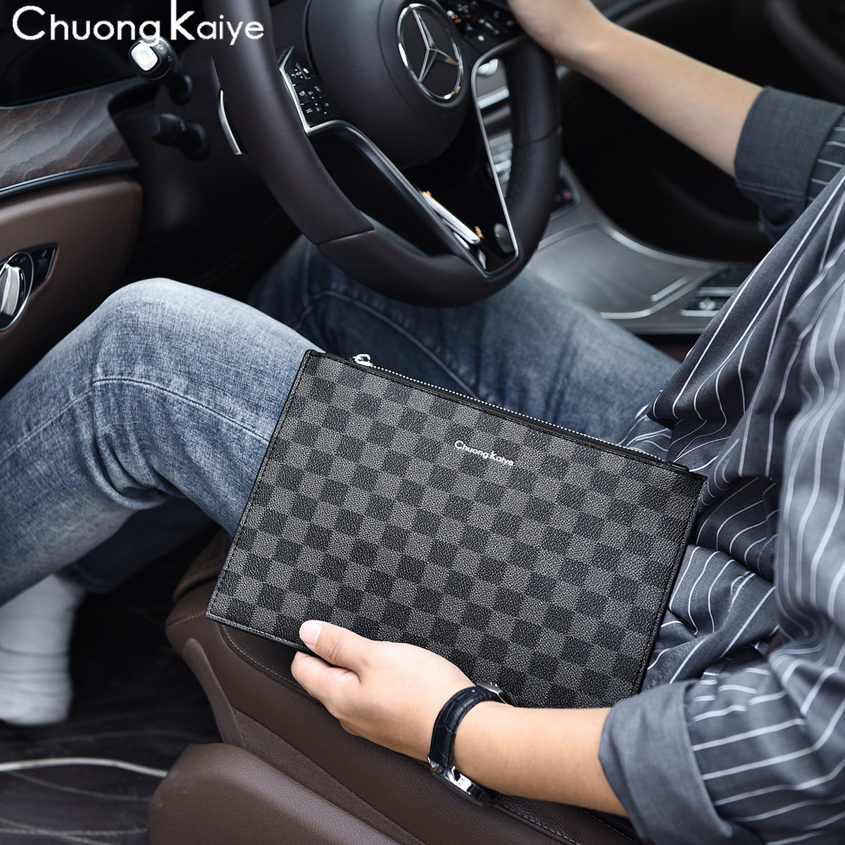 ChuongKaiye新款手拿包男商务休闲手抓包时尚格纹手拎包高档手包