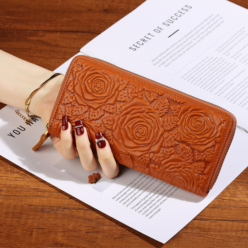 高档牛皮大容量零钱包立体压花真皮手拿包便携手拎包放手机小手包