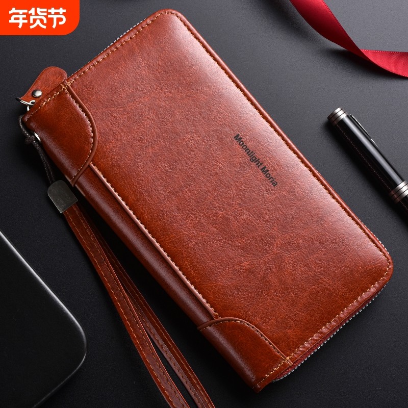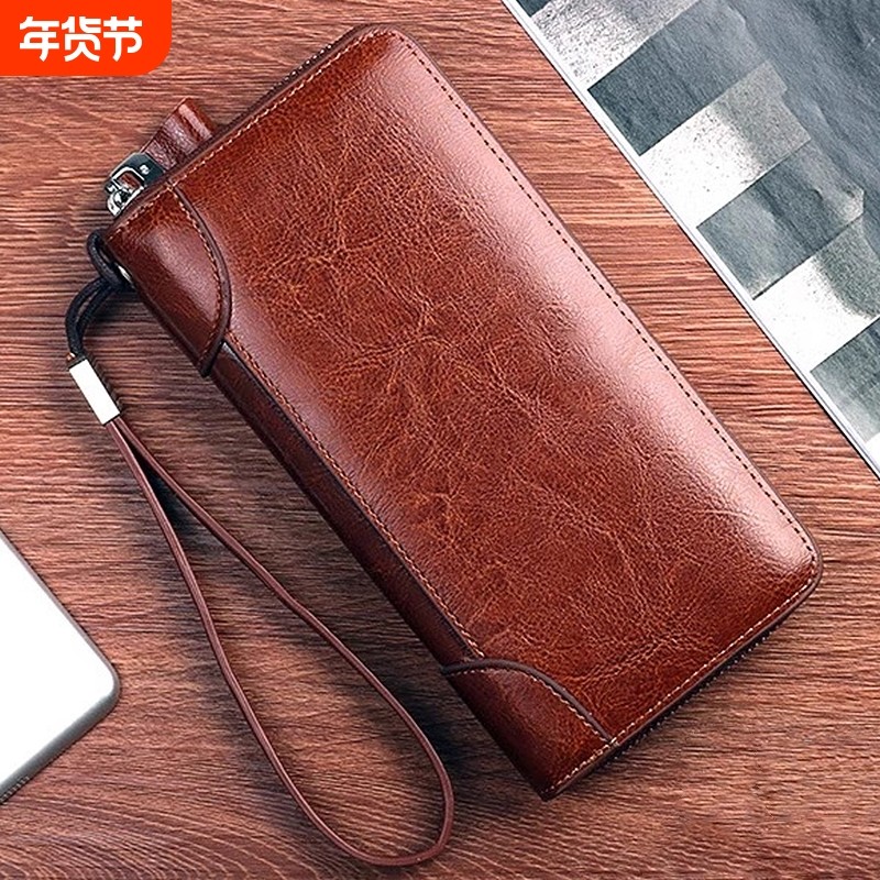 商务手包男真皮大容量高档长款钱包头层牛皮拉链新款多功能手拿包