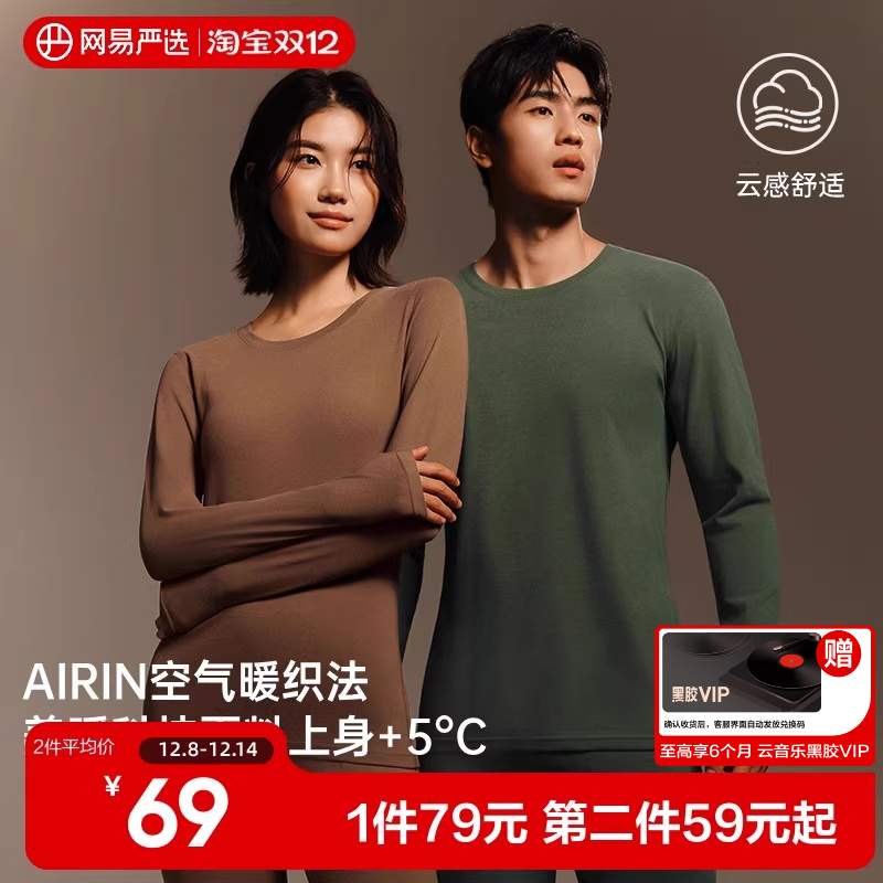 网易严选暖姜302保暖内衣男2025年冬季秋衣秋裤套装加绒舒适内搭