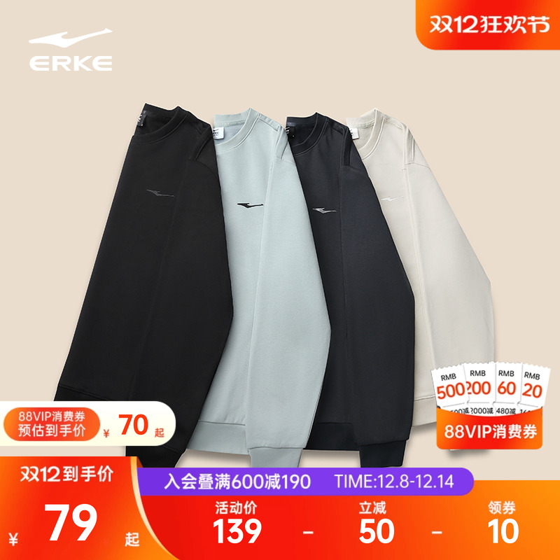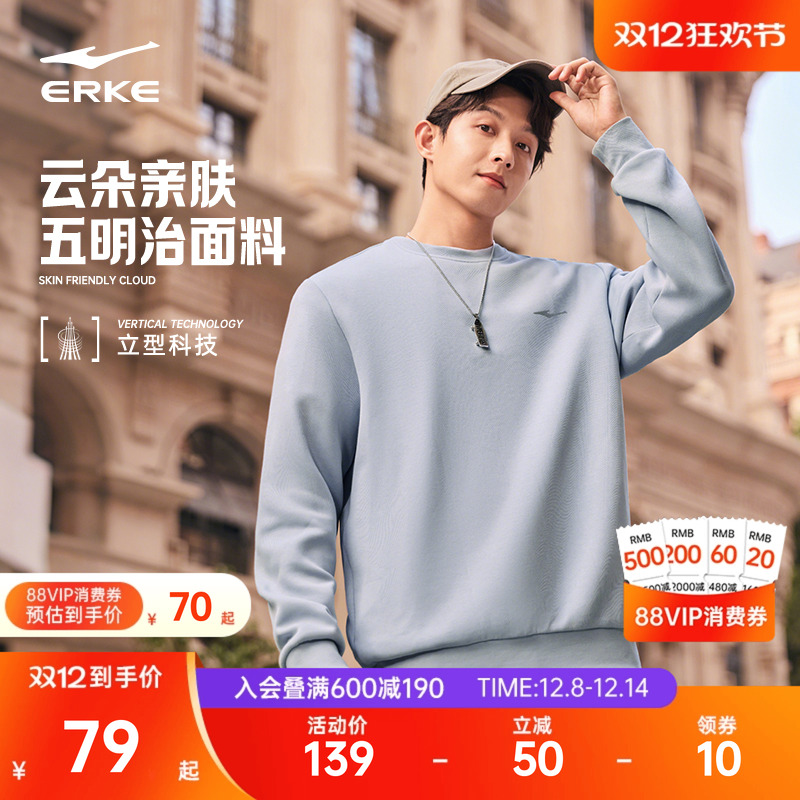 鸿星尔克加绒卫衣男冬季新款男士男生青少年加厚运动圆领长袖上衣