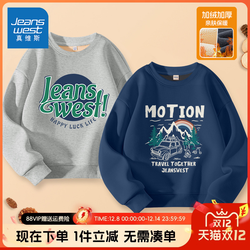 真维斯童装男童加绒卫衣秋冬款男孩休闲服儿童2025新款大童上衣男