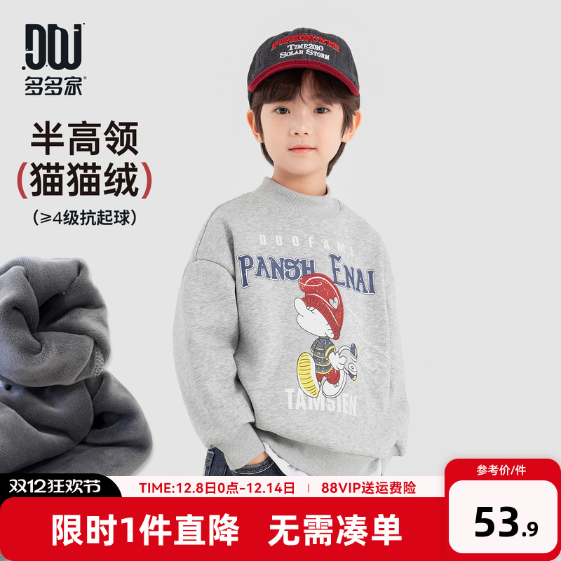 多多家男童加绒卫衣2025冬装新款秋冬儿童印花加厚一体绒男孩上衣