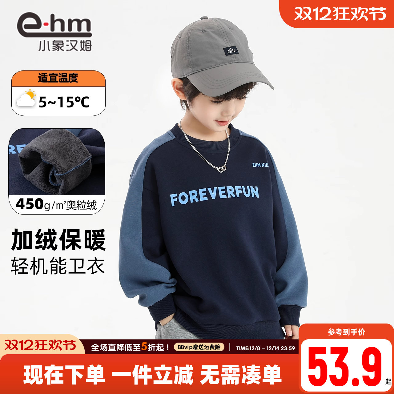 小象汉姆童装中大童男孩男童加绒卫衣儿童冬装2025新款打底衫上衣