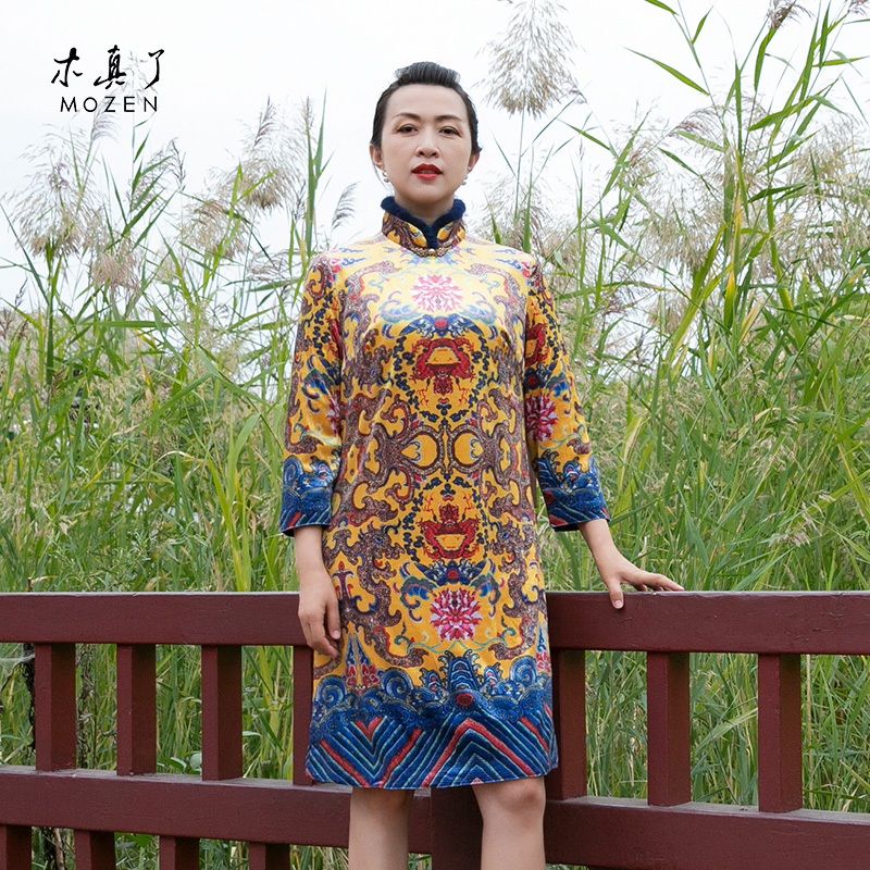 沐兰新中式复古毛领连衣裙2025年冬季新款气质优雅改良式旗袍裙