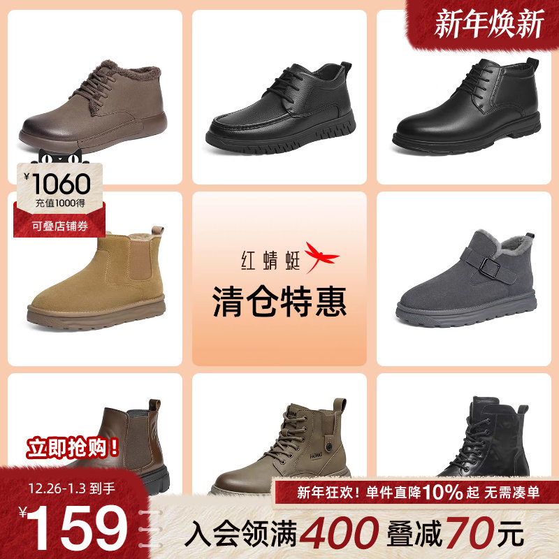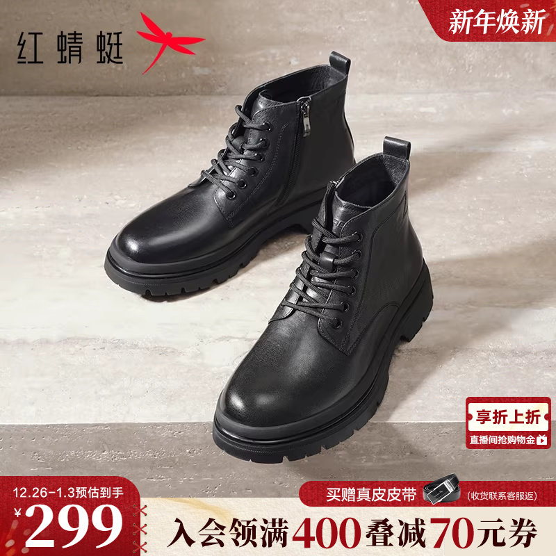 红蜻蜓马丁靴男款2025秋冬新款男鞋真皮英伦工装靴高帮户外靴子男