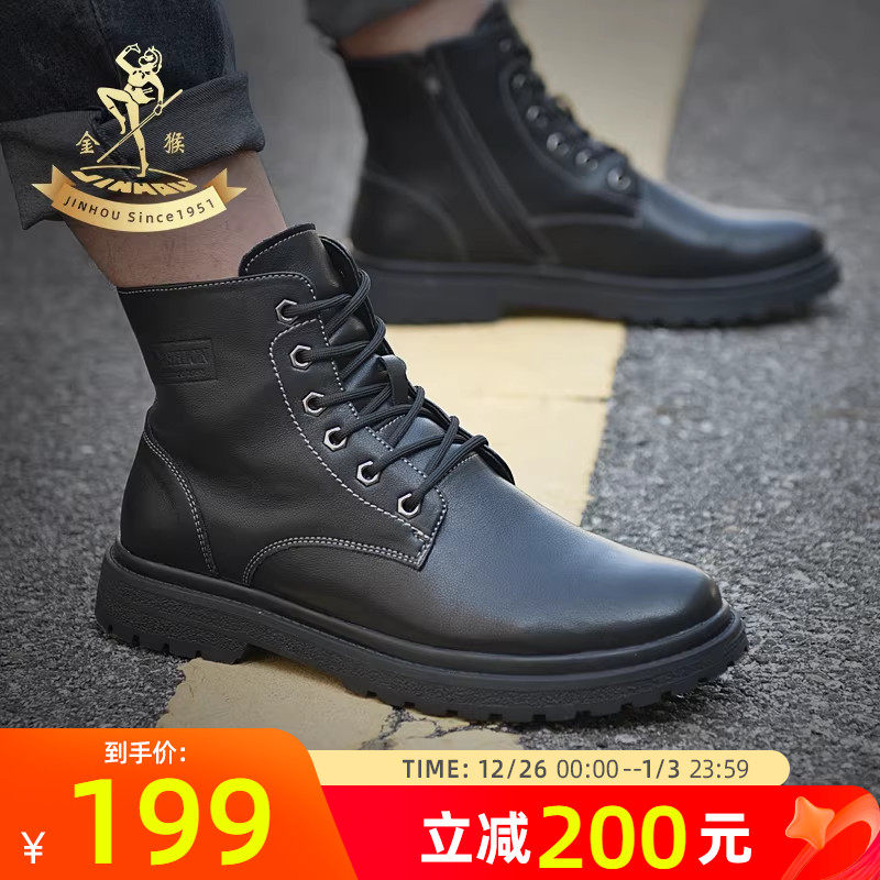 金猴马丁靴男英伦风冬季保暖加绒男鞋系带高帮工装靴厚底黑色靴子