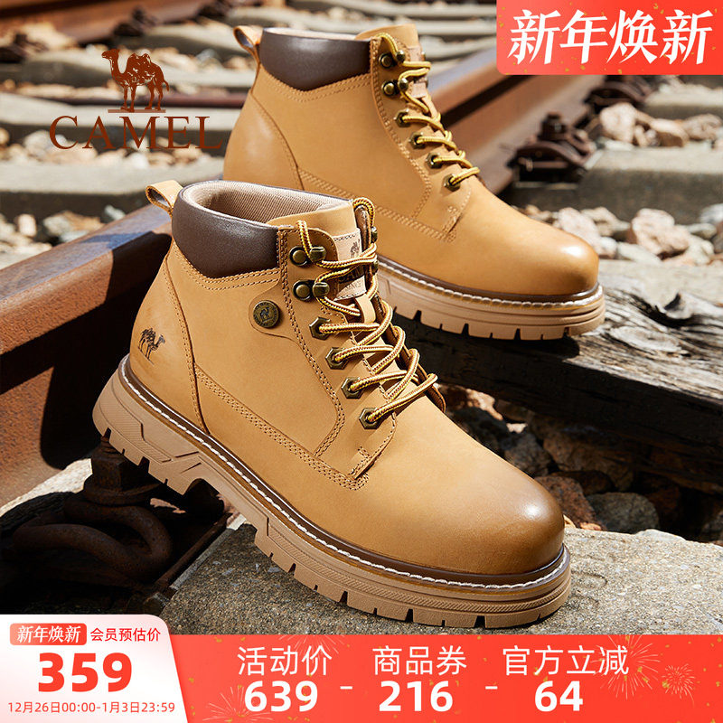 骆驼男鞋2025秋冬马丁靴英伦风高帮真皮中帮复古工装靴子黑色男款