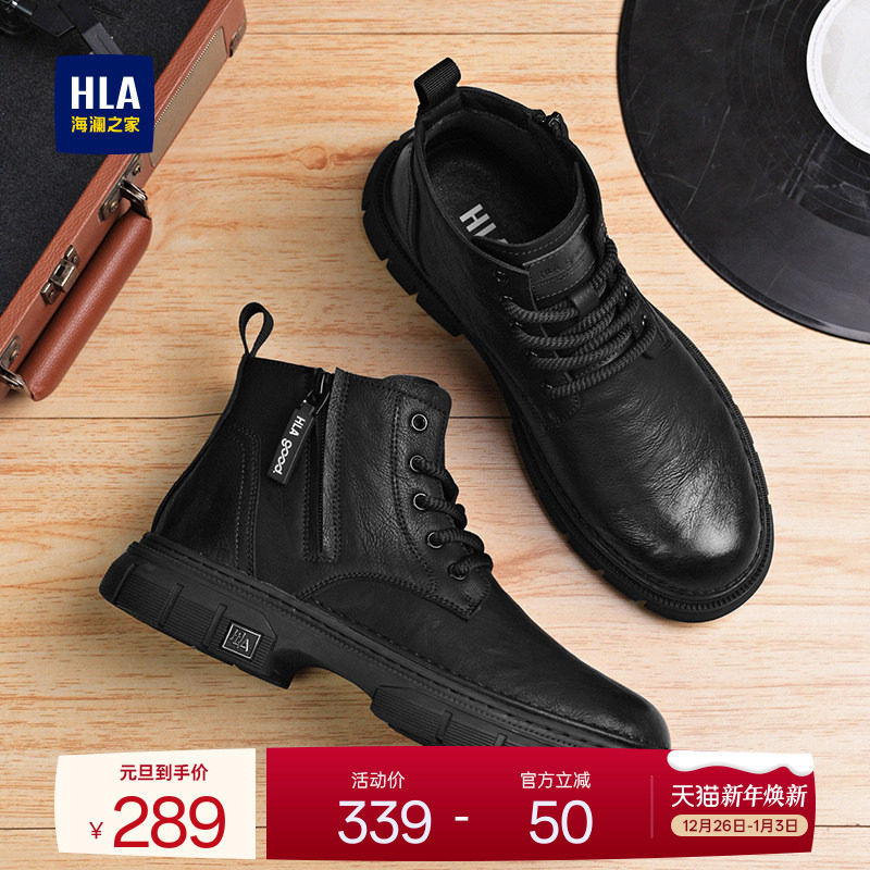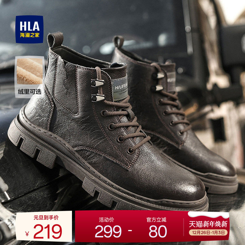 HLA/海澜之家男鞋高帮秋冬潮流皮靴户外马丁靴英伦风加绒工装男靴