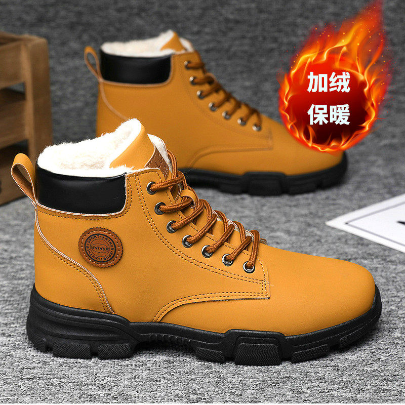 马丁靴男鞋冬季棉鞋高帮英伦工装大黄靴子男士加厚加绒保暖雪地靴