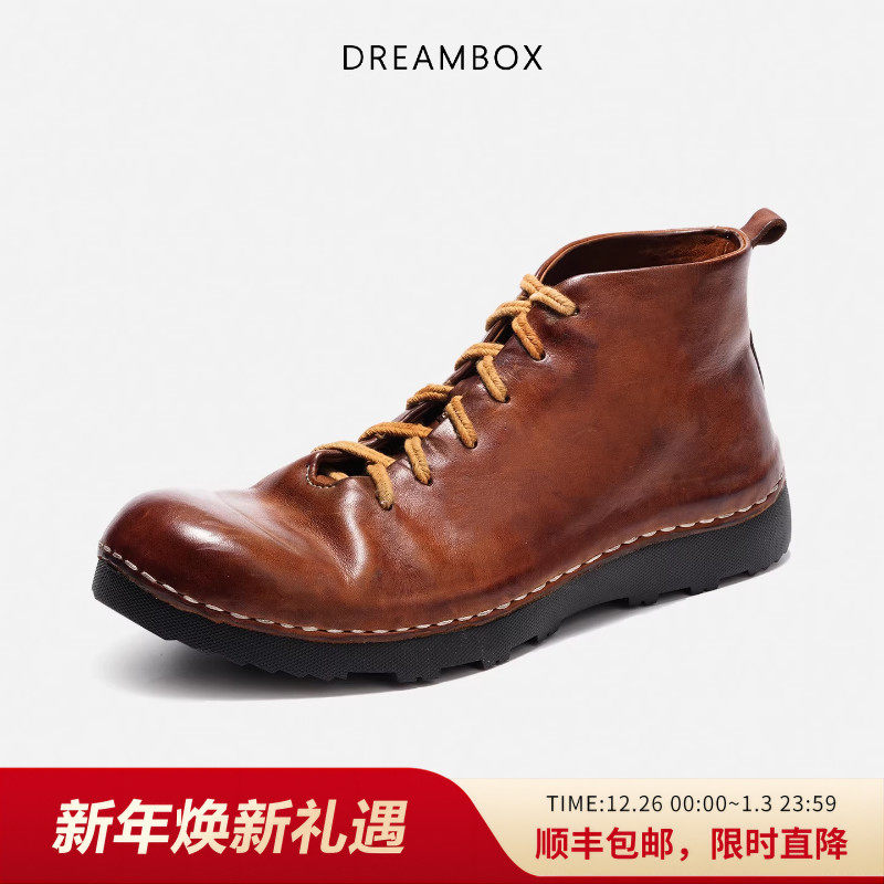 dreambox钧博水洗马皮纯手工高帮男鞋英伦复古百搭马丁靴秋冬短靴