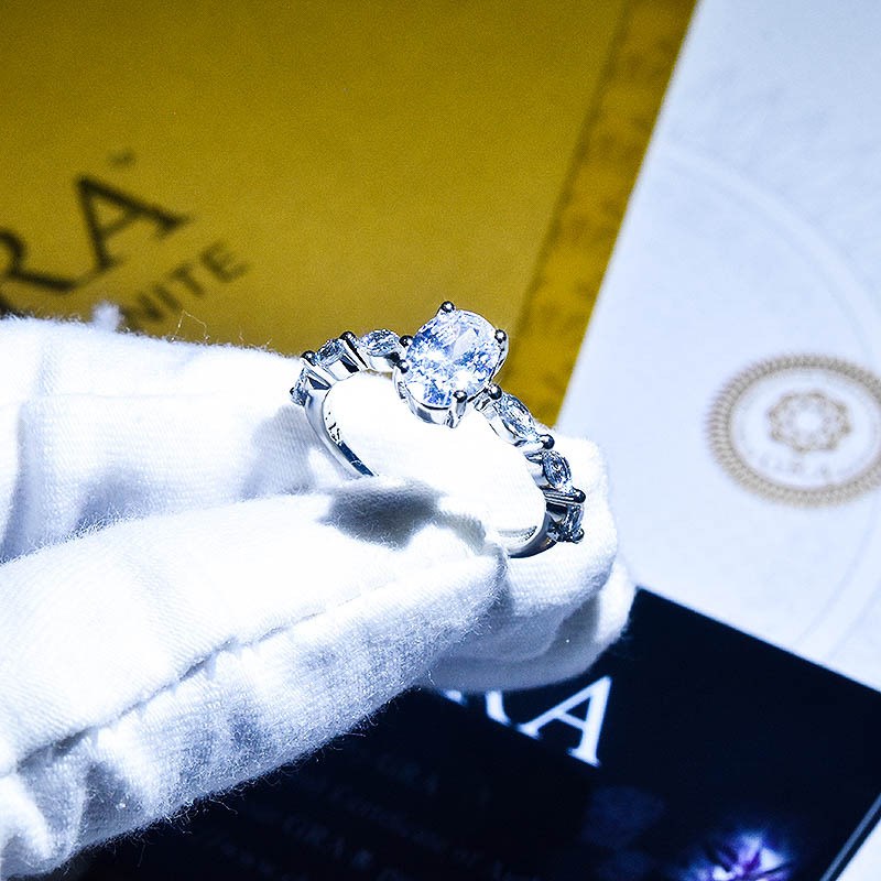正品莫桑石钻戒女戒指纯银白金指环天使之吻时尚简约结婚仿真钻戒