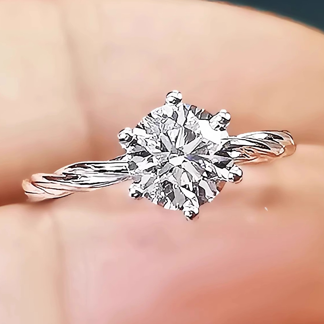 进口D色莫桑石钻戒女戒指婚戒S925银镀铂金扭臂微镶六爪经典首饰