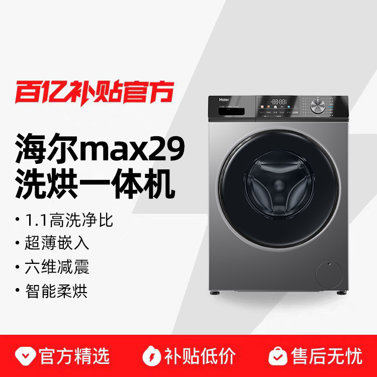 [换新补贴]海尔滚筒洗衣机家用全自动超薄10kg大容量洗烘MAX29