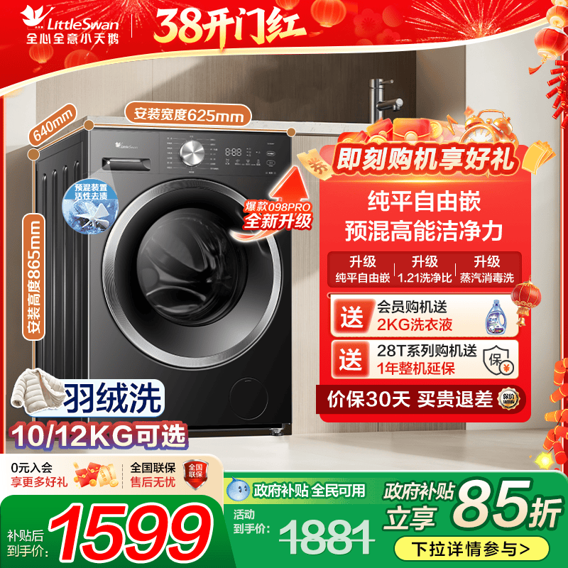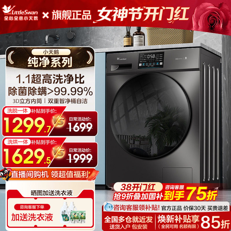 以旧换新补贴小天鹅滚筒洗衣机10/12kg洗烘一体家用全自动098PRO
