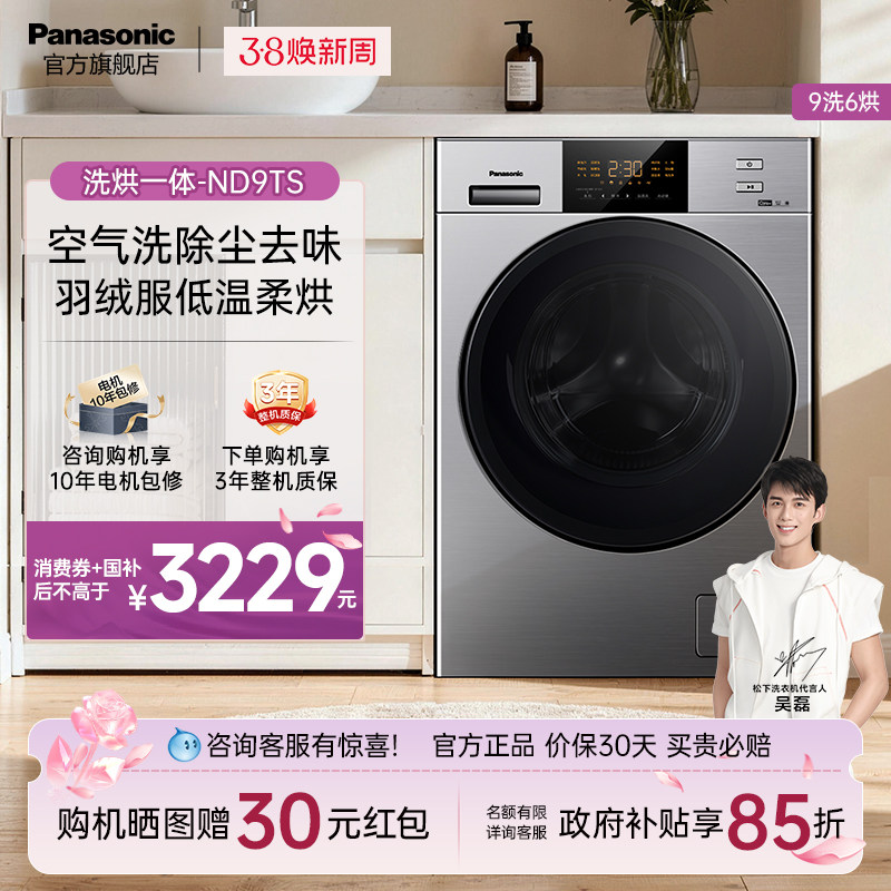 松下滚筒洗衣机9kg大容量家用全自动变频洗烘一体除螨除尘ND9TS