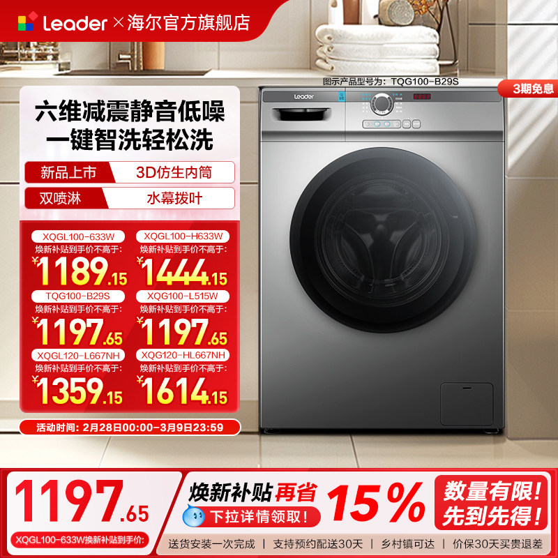 全民补贴海尔leader统帅10/12kg滚筒洗衣机全自动家用洗烘大容量