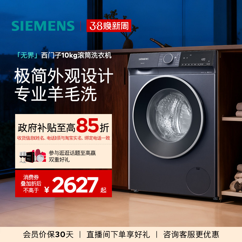 【蓝宝石】西门子10公斤滚筒全自动智能除渍洗衣机1U101U801U00