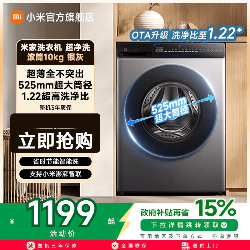 小米米家超净洗超薄全嵌滚筒洗衣机10kg洗脱一体大容量全自动智能