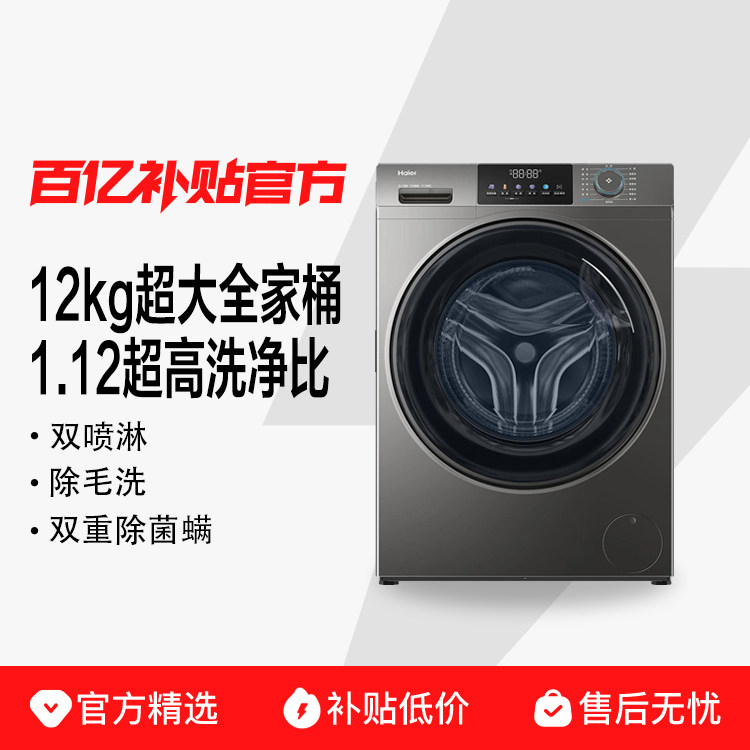 海尔滚筒洗衣机家用全自动12KG大容量洗烘一体1.12超高洗净比50DS
