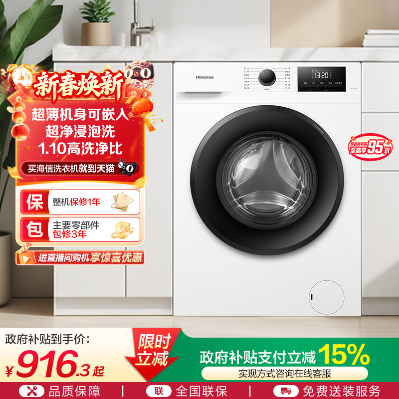 海信7公斤滚筒洗衣机全自动变频家用租房超薄洗衣机小型洗脱一体