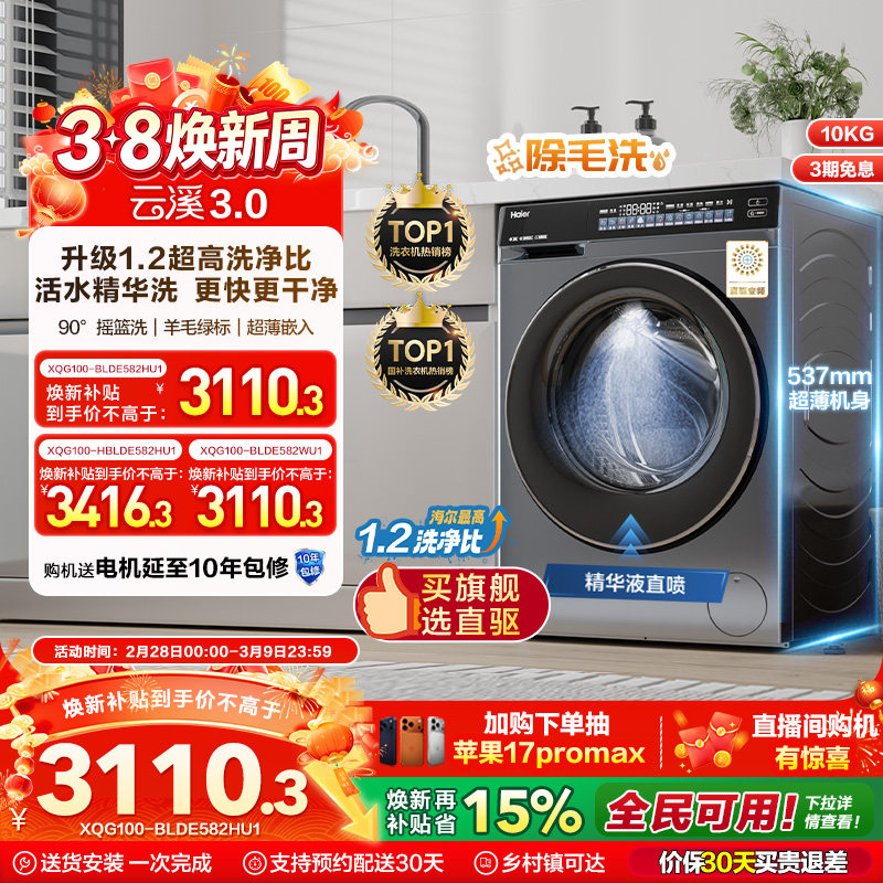 [云溪3.0]海尔582滚筒洗衣机家用全自动精华洗直驱超薄10kg