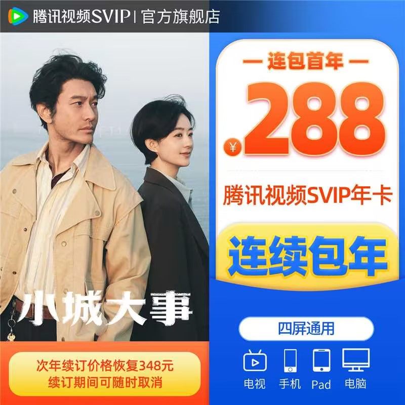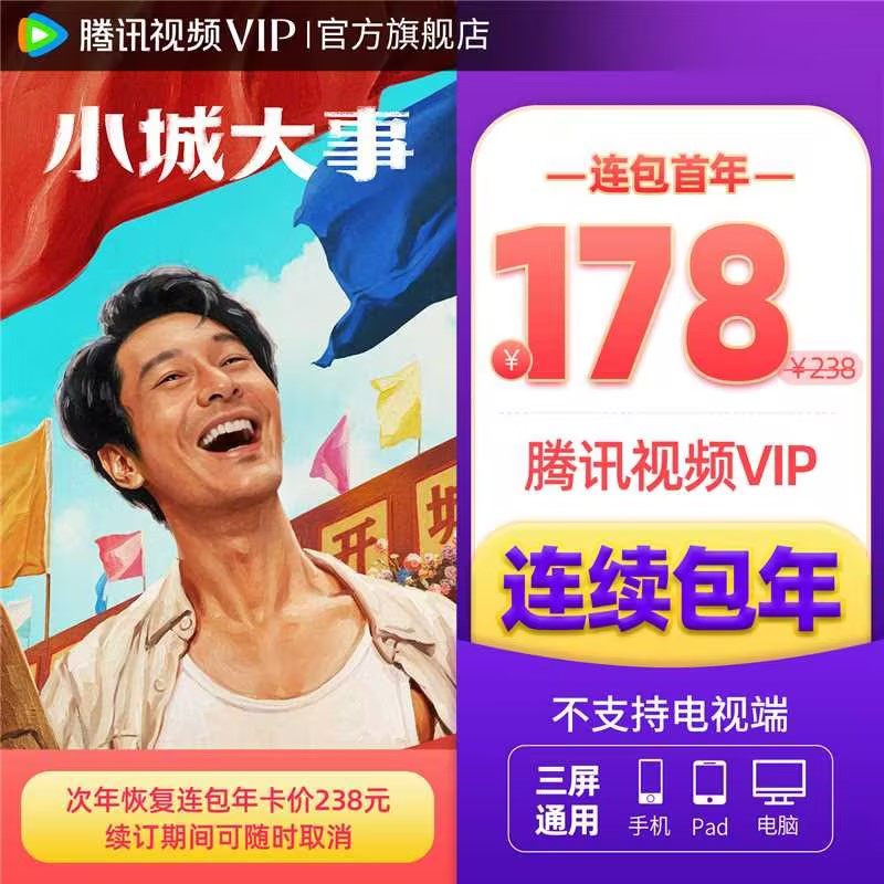 【连续包年】腾讯视频VIP会员年卡12个月不支持电视端 小城大事