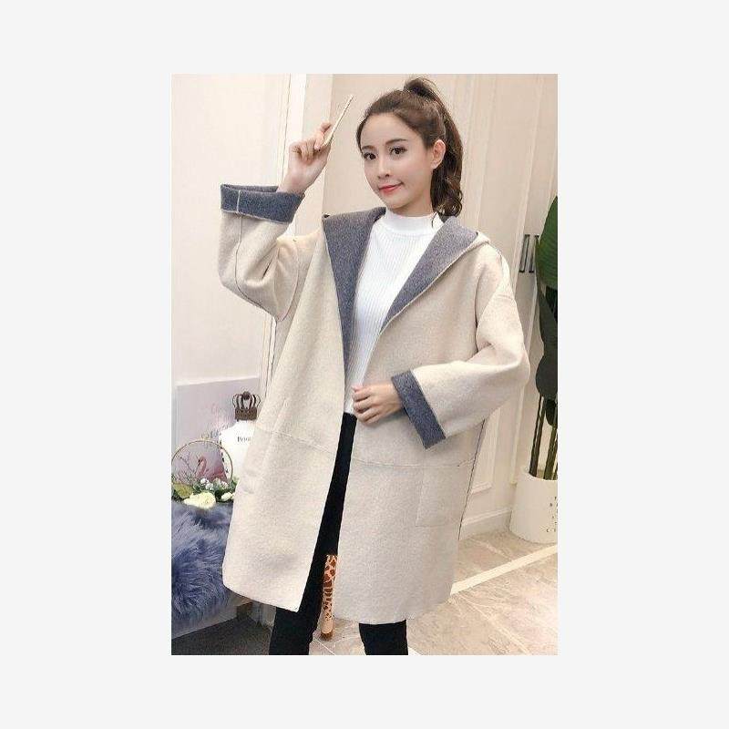 自制款男女法兰绒宽松毛呢外套冬装可爱耳朵连帽学生斗篷加厚大衣