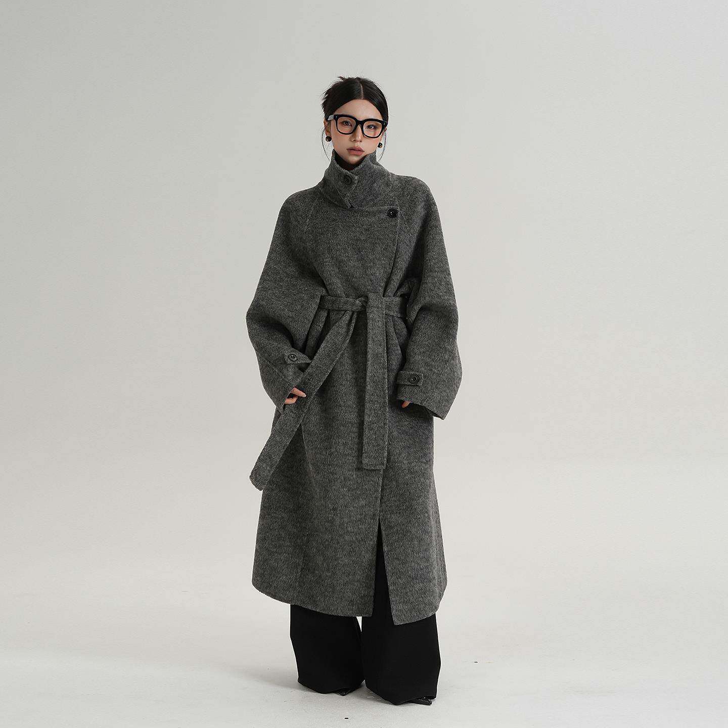 SRYS AME气质高级立领长款宽松羊毛大衣双面毛呢外套秋冬装新款女