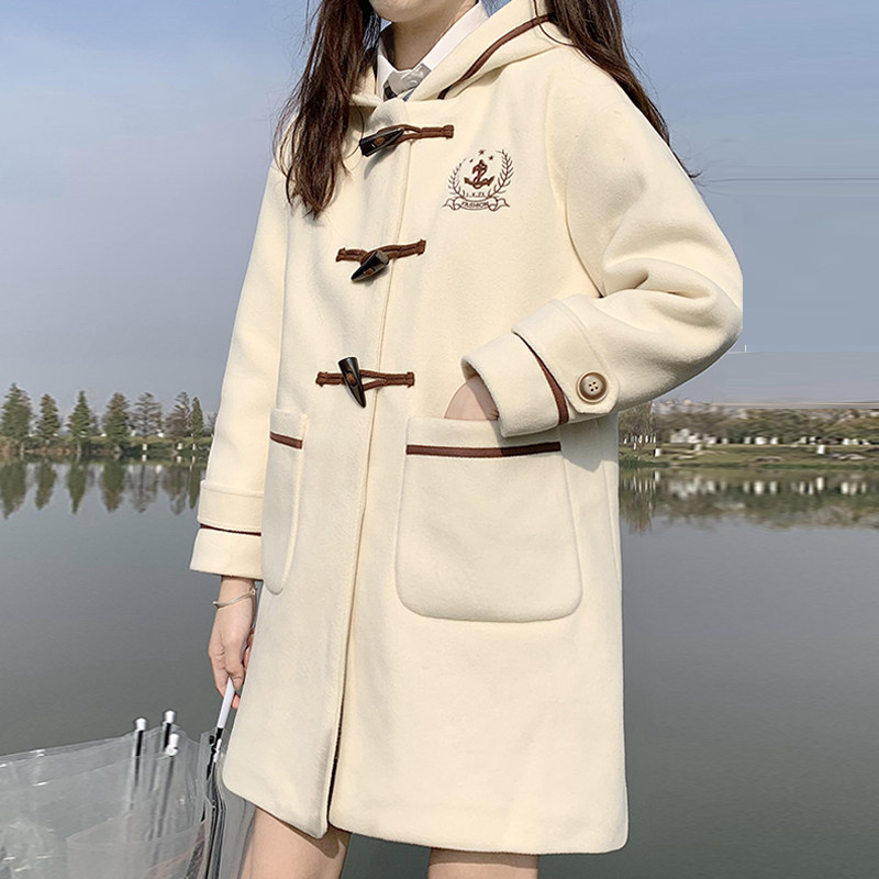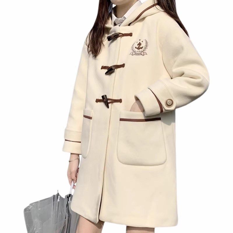 新21516学院风毛呢外套2021秋冬新款初中学生冬装少女牛角扣呢子