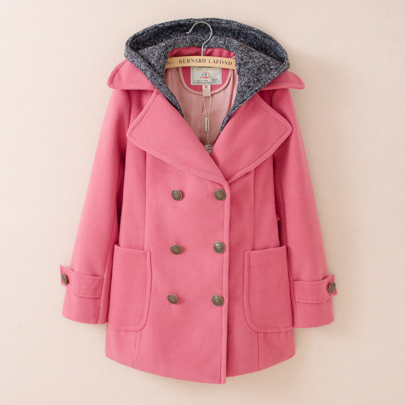 女童加厚呢子大衣连帽学生带扣毛呢外套中长款秋冬装大童保暖外套