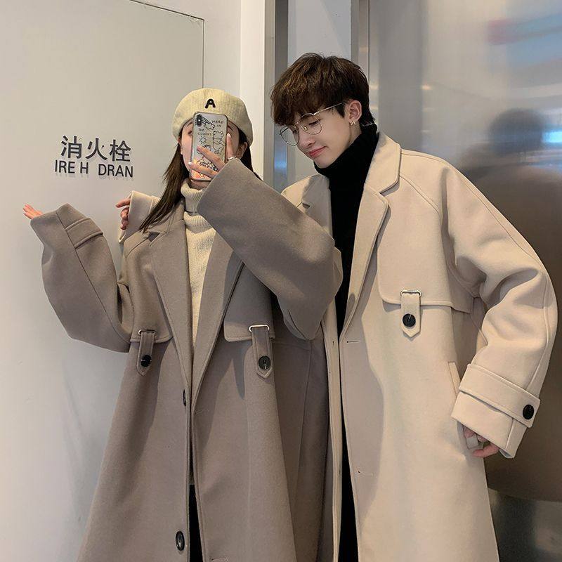 情侣装秋冬装中长款毛呢大衣外套男女学生港风韩版高级感过膝风衣