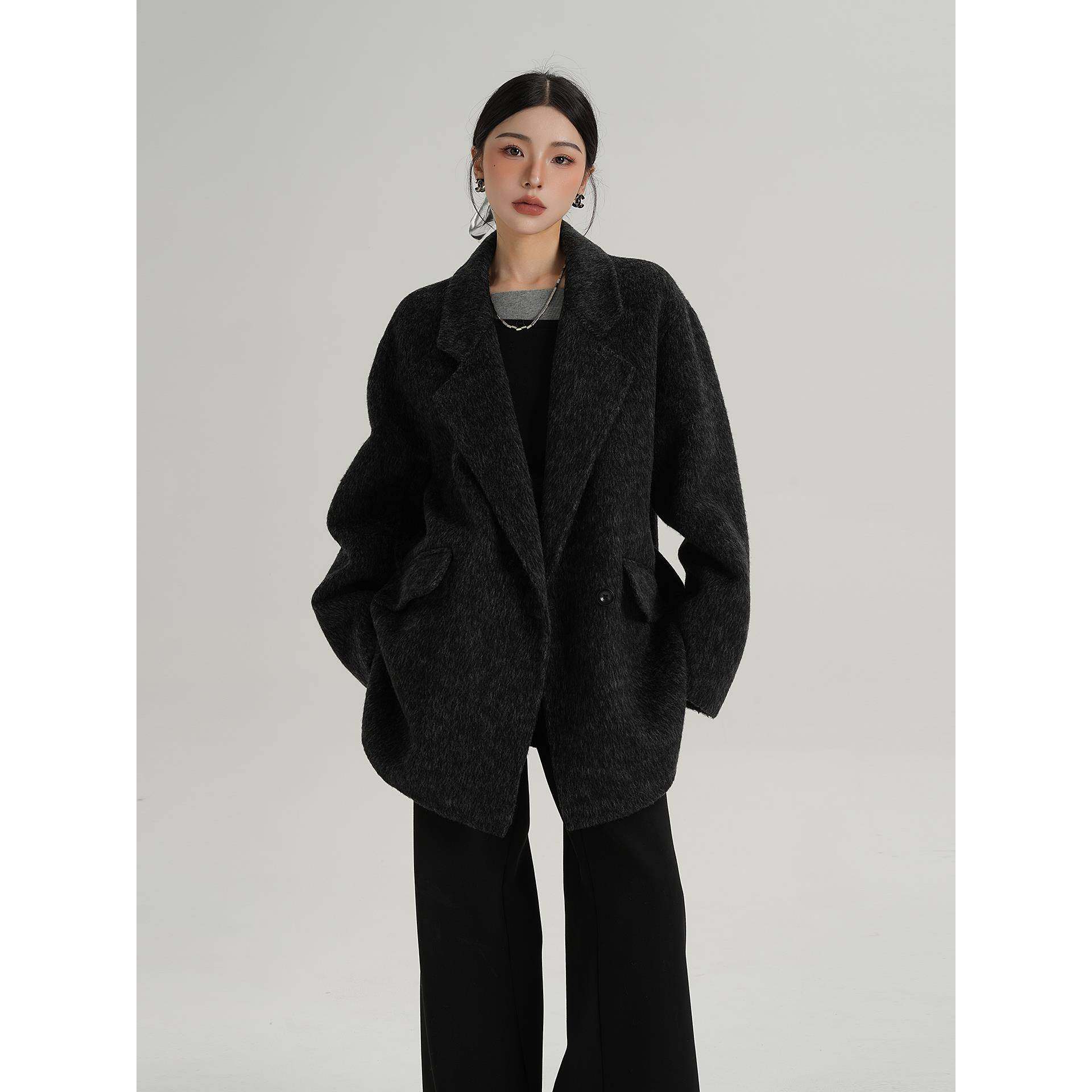 SRYS AME气质中长款宽松版型西装毛呢外套羊毛大衣秋冬装新款女装