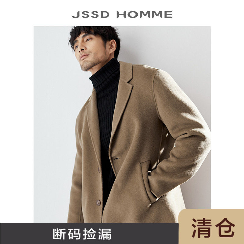 JSSD HOMME 冬季新款双面呢纯羊毛大衣男款中长款毛呢大衣外套男
