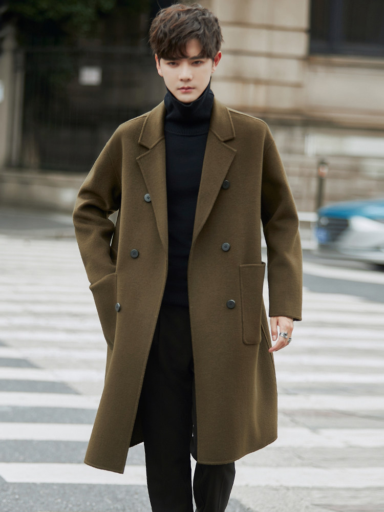 w2x英伦复古纯羊毛呢外套男款双面呢大衣秋冬男士加厚风衣中长款