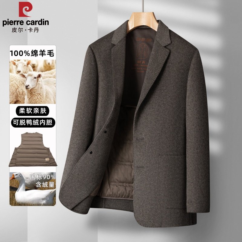 皮尔卡丹纯羊毛西装大衣男款商务高级感秋冬羽绒内胆加厚毛呢外套